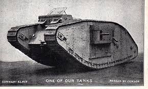 Ive noticed a rather wry or crass sense of humour that creeps into war. Maybe its a defence mechanism, maybe its designed to boost moral ? Writing slogans on bombs is a relatively new idea, but I came across a chilling and sarcastic example of this humour while watching a series about the World Wars. One of the first prototype tanks to be used in anger in WW1 had painted on its side in gay bold happy letters